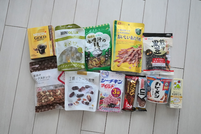 山に持ち込んでいるのはこのようなラインナップ。塩分に注意しながら、総カロリーとタンパク質と食物繊維を意識している。重量と調理の簡易さの点でフリーズドライやアルファ米を基本に。数値ターゲットは山行の負荷と、個人の身長体重によっても変わるので、調整しながら。全て「そのへんのスーパーやコンビニで手に入れられる食材で賄う」がテーマ。
