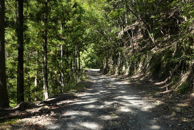 ひたすら林道。晴れているが木々に囲まれているせいか、涼しい。どんどん歩いていく。瞑想的に。